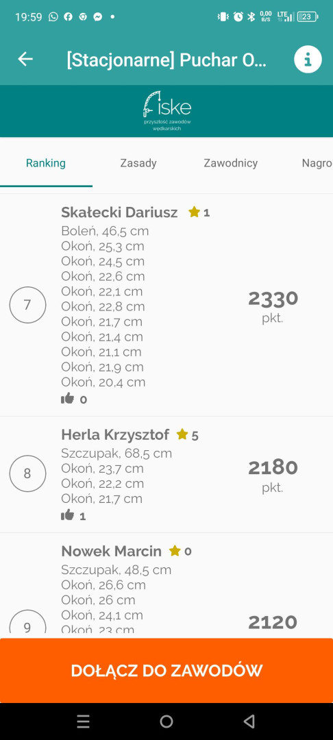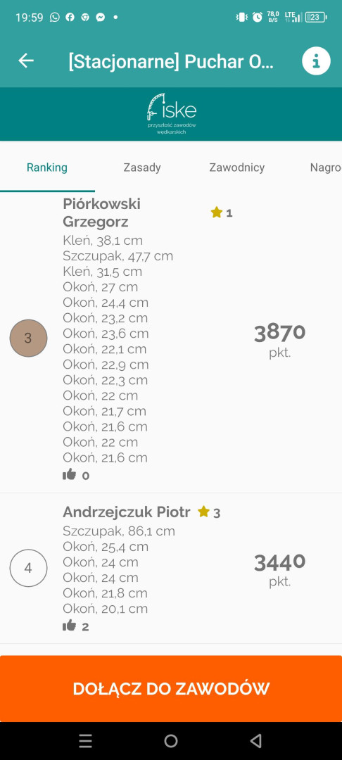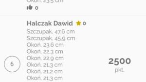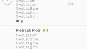 Tuż za podium uplasował się Piotr Andrzejczuk z koła Zielona Góra 1, który oprócz 5-ciu wymiarowych okoni wyholował największą rybę zawodów tj. szczupaka od długości 86,1 cm – łącznie 3440 punktów. W zawodach tych padła rekordowa ilość wymiarowych ryb bo aż 197. Wyniki cieszą tym bardziej, że mimo katastrofy sprzed 3 lat zawodnicy o wysokich umiejętnościach potrafią udowodnić, że ryba w naszej Odrze wiąż jest.